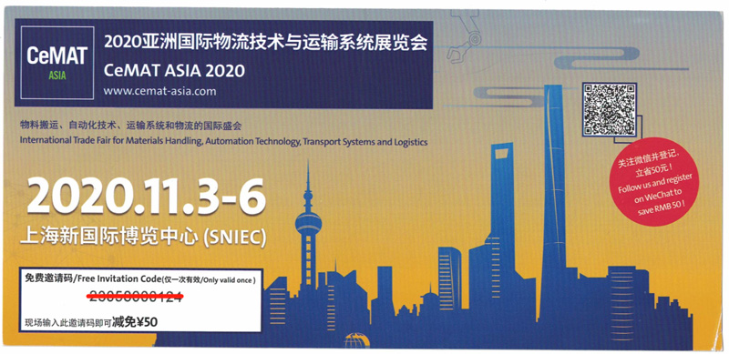 恭請蒞臨:W2館 G1-2 | 2020 亞洲國際物流技術(shù)與運輸系統(tǒng)展覽會 | CeMAT ASIA 2020